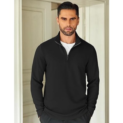 Men's Quarter Zip Up Pullover Lightweight Mock Neck Sweatshirt Casual Long Sleeve Polo Shirt