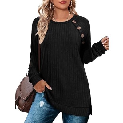 Long Sleeve Shirts for Women Lightweight Button Decor Tunic Tops Side Split