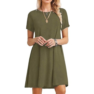 Womens Casual Tshirt Dresses Short Sleeve Summer Beach Dress Swing Flowy Mini Dress