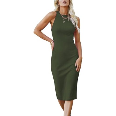 Women's Basic Bodycon Midi Dress Crewneck Sleeveless Casual Summer Tank Top Dresses
