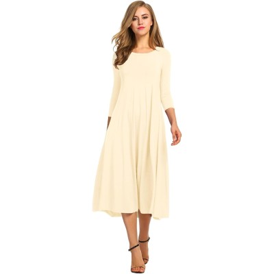 Women's 3/4 Sleeve A-line and Flare Midi Long Dress