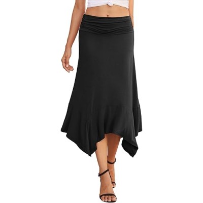 Women's Casual Elegant Flowy Handkerchief Hemline Midi Skirt