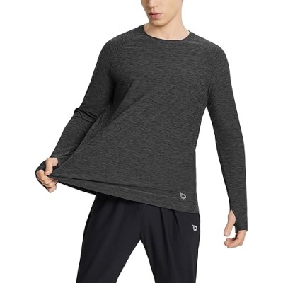Men's Long Sleeve Workout Shirts Soft Running Athletic Lightweight Tee Shirts Quick Dry with Zipper Pocket